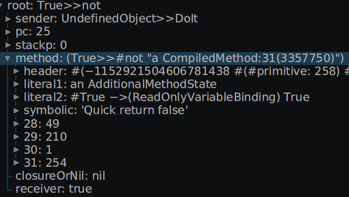 >>> but the method code has no such instruction. In Squeak this doesn't seem