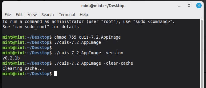 I downloaded the AppImage (https://github.com/ctutil/script-cuis/releases/download/v0.2.1b/cuis-7.2.AppImage) from the git repo on a fresh live Linux Mint and it seems to be working.